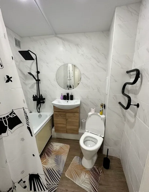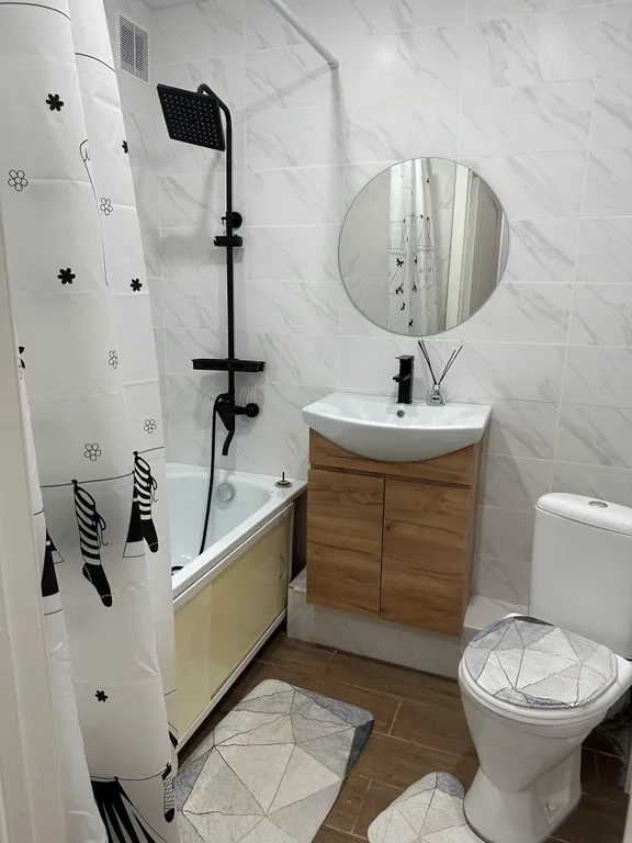 Квартира оборудована балконом, где можно насладиться свежим воздухом. Ванная комната оформлена в современном стиле с душевой кабиной и ванной.