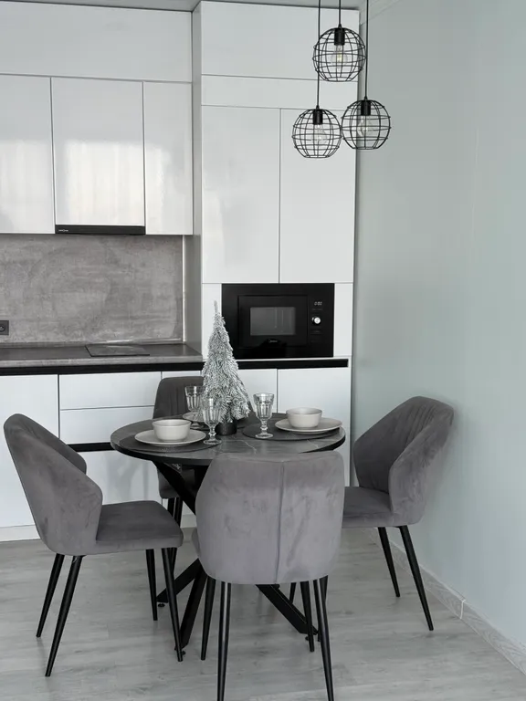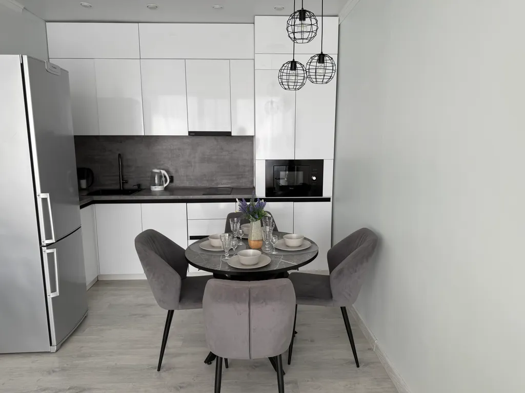 Места для парковки. На кухне имеются индукционная плита, холодильник, микроволновая печь, чайник, тарелки, бокалы, столовые приборы.