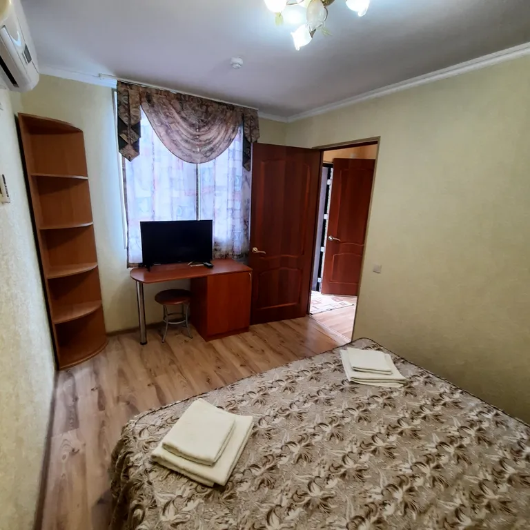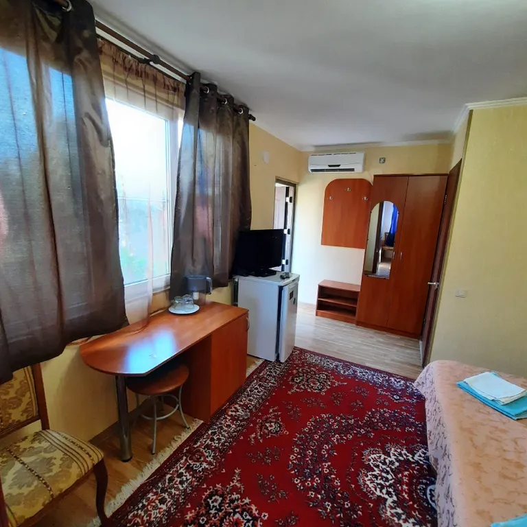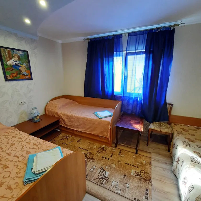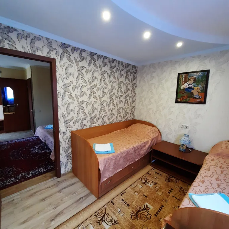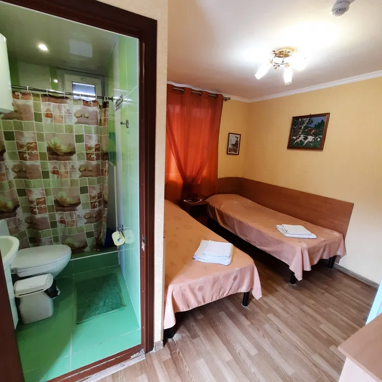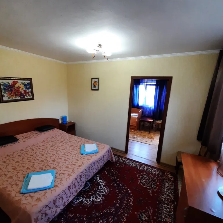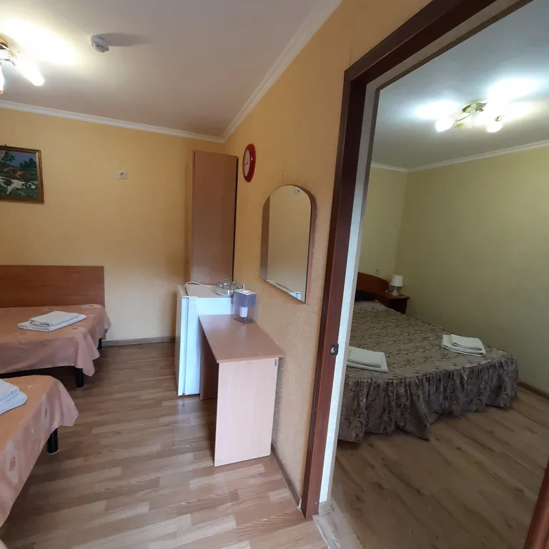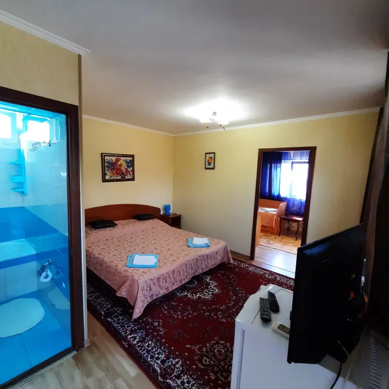 В номере две комнаты, одну из которых можно использовать как детскую. В вашем распоряжении душ, раковина, туалет, а также все необходимые гигиенические принадлежности. Для вашего комфорта в номере есть телевизор и холодильник. Общая летняя кухня позволяет самостоятельно готовить любимые блюда.