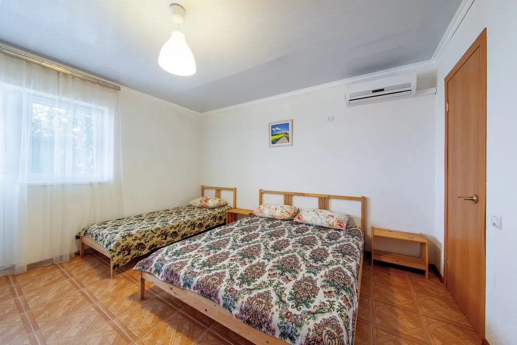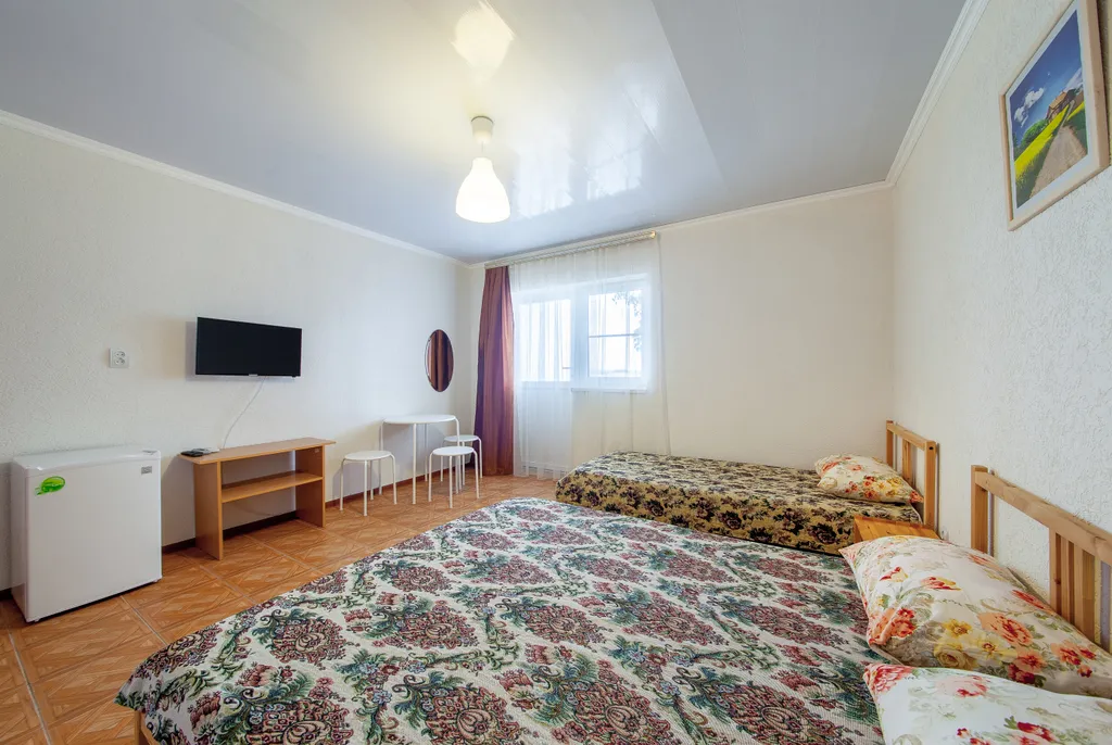 Номерной фонд дома насчитывает 11 номеров: все номера с размещением до 4-х персон. С балконов открывается вид на зеленые поля. Все номера естественно светлые, но остаются прохладными за счет зеленой изгороди. Территория гостевого дома огорожена забором. Парковка освещается и находится на прилегающей территории. Во дворе расположена беседка со столиками и зоной барбекю, полноценная детская площадка, бассейн. Также на территории гостевого дома имеется большая кухня-столовая, где вы можете приготовить еду самостоятельно и комфортно разместиться за столиками.
