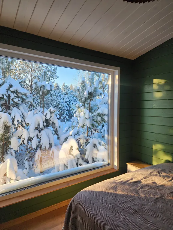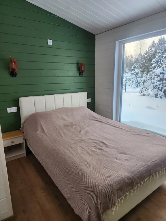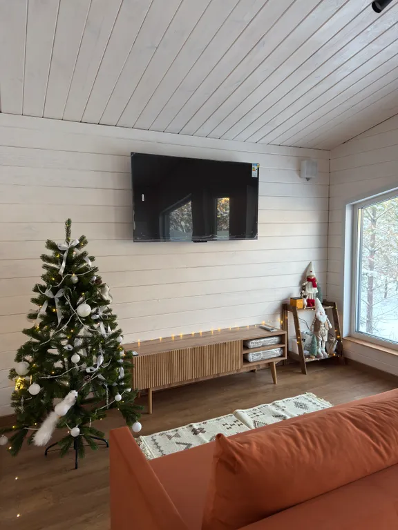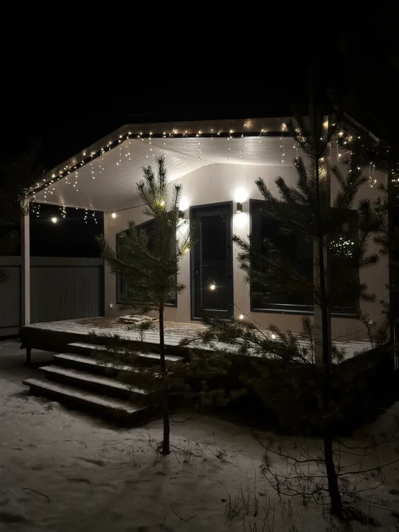 Домик с панорамными окнами, отлично отапливаемый и новым современным ремонтом расположен на участке со своим хвойным мини лесом.