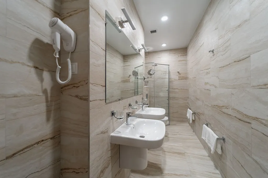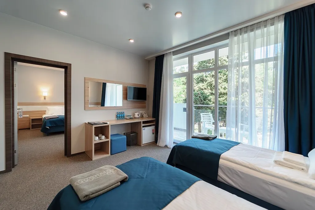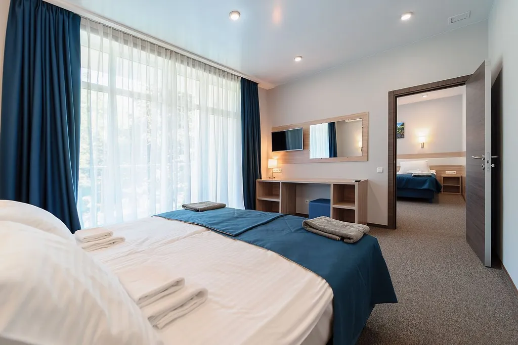 Дополнительно в номере: халат (детские халаты с размерами от 3 до 6 лет и от 6 до 12 лет предоставляются по требованию), тапочки, питьевая бутилированная вода ( пополняется ежедневно), чайная посуда и чайный набор, пакет для прачечной, бланк прачечной, щетка для одежды, губка/рукавичка для обуви, ложка для обуви, швейный набор, косметическое зеркало, письменные принадлежности (блокнот, карандаш), меню подушек.