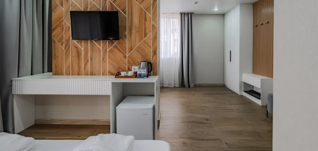 В качестве дополнительного места можно использовать раскладной диван. Услуга не включена в основной тариф.