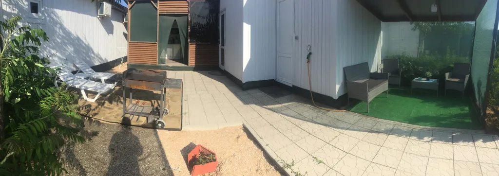 До моря 10 минут пешком, ракушечно- песочный пляж.